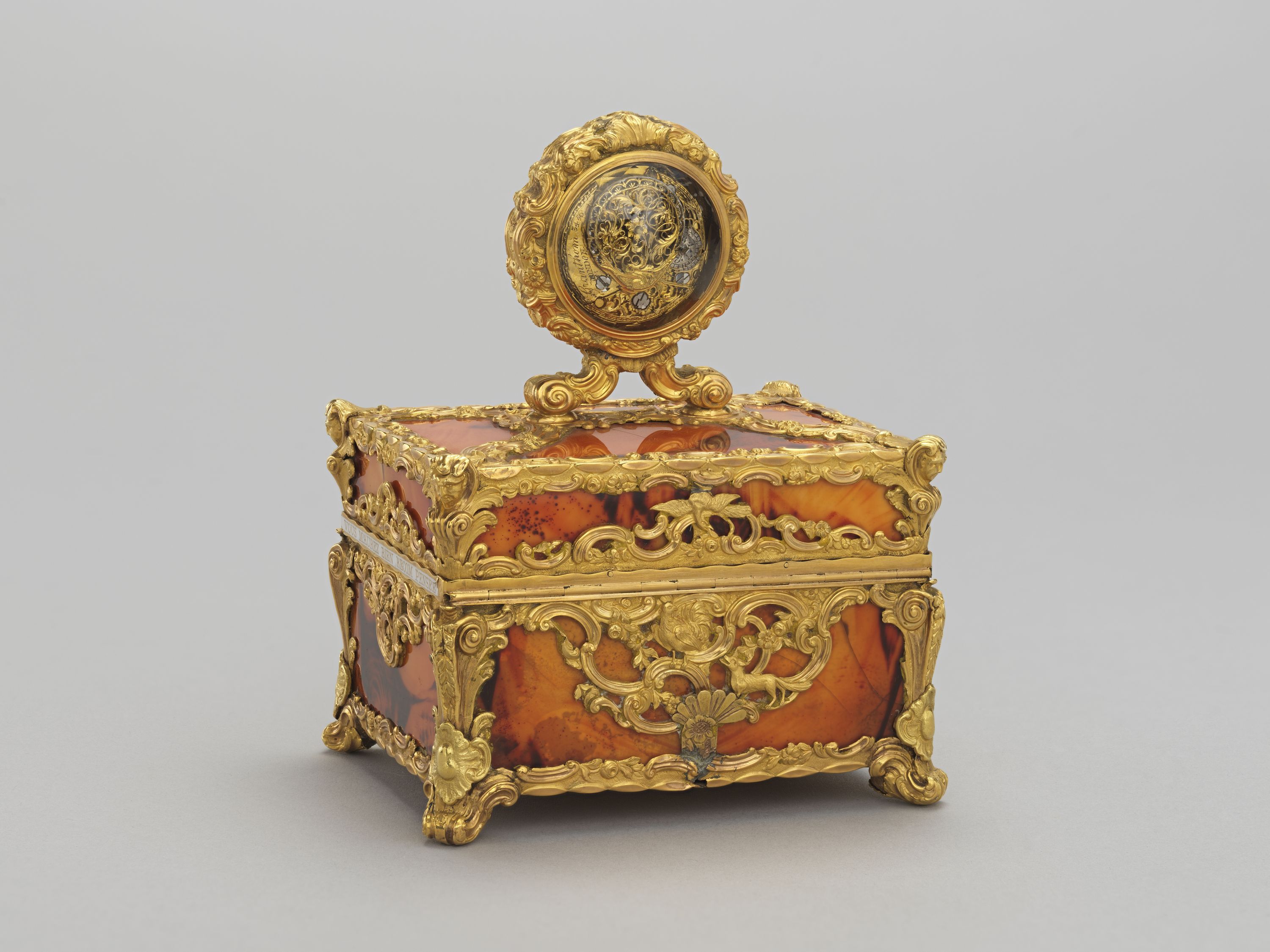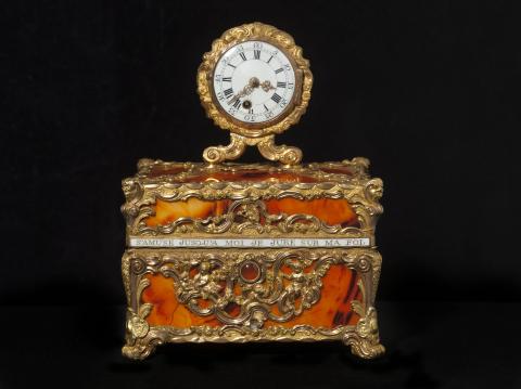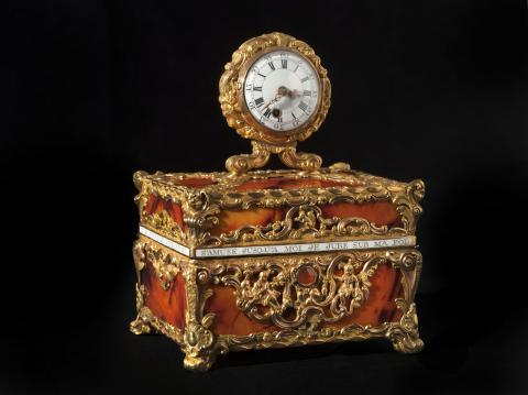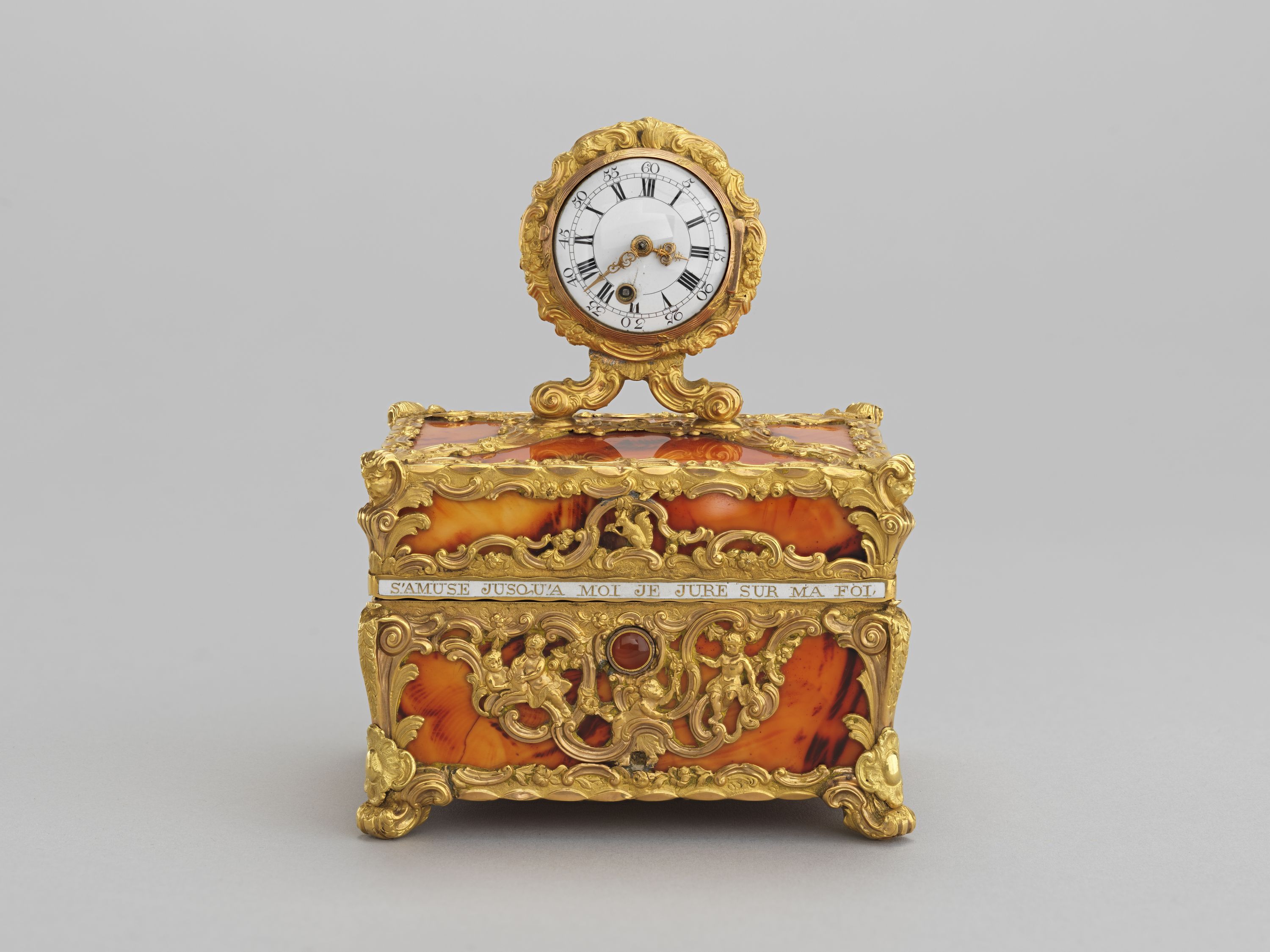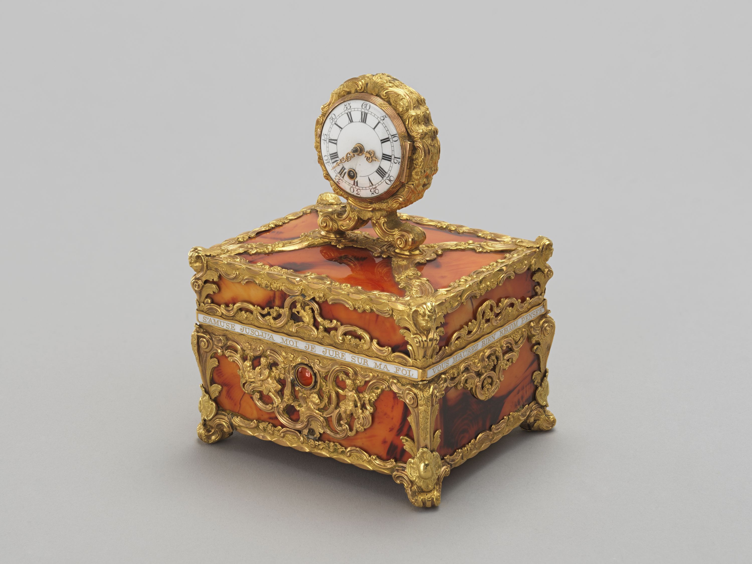 Inscription : Inscription sur la ceinture, en lettres d'or sur émail opaque blanc : "Si en m'ouvrant, votre pensée / S'amuse jusqu'à moi / Je jure sur ma foi, / Je serai bien récompensée."
